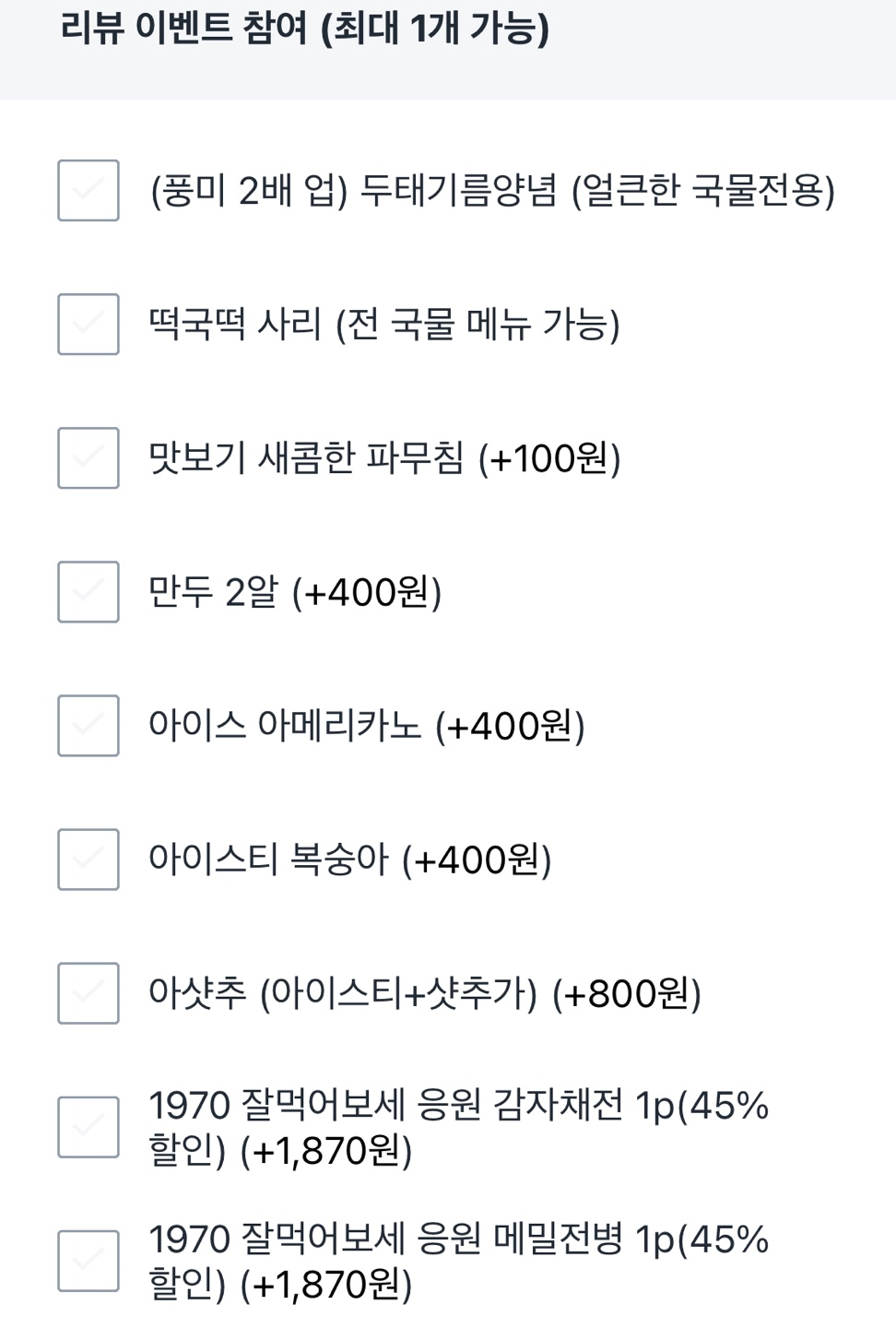 글 작성하려고 리뷰 이벤트 항목 열어보니까 몇 백원씩 추가해야함