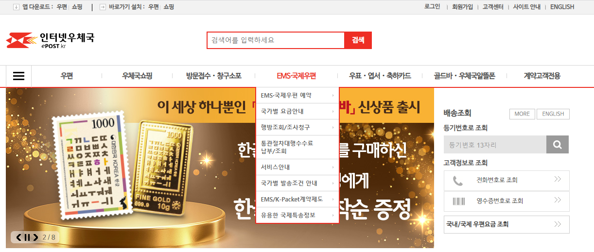 우체국 메인 홈페이지에서 EMS 및 국제우편에 대한 정보를 쉽게 찾으실 수 있습니다.