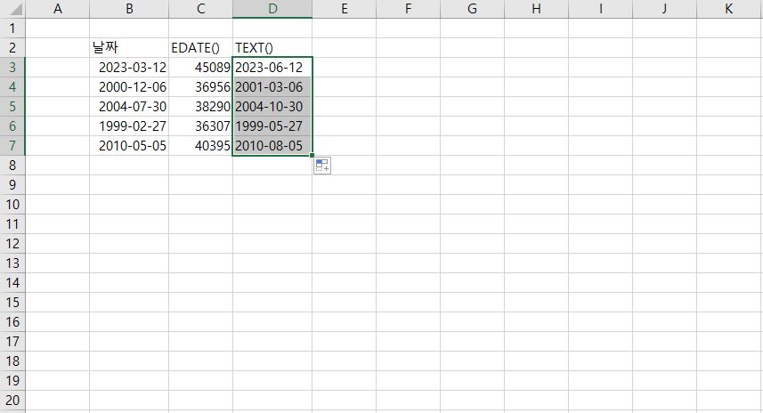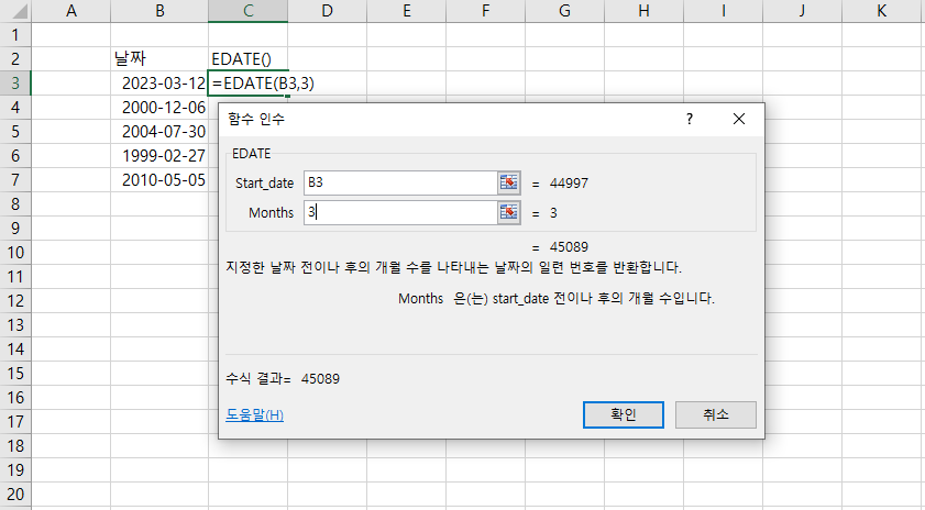 EDATE 함수 마무리하겠습니다.